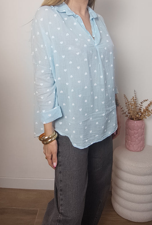 BLOUSE COEURS BLEUE