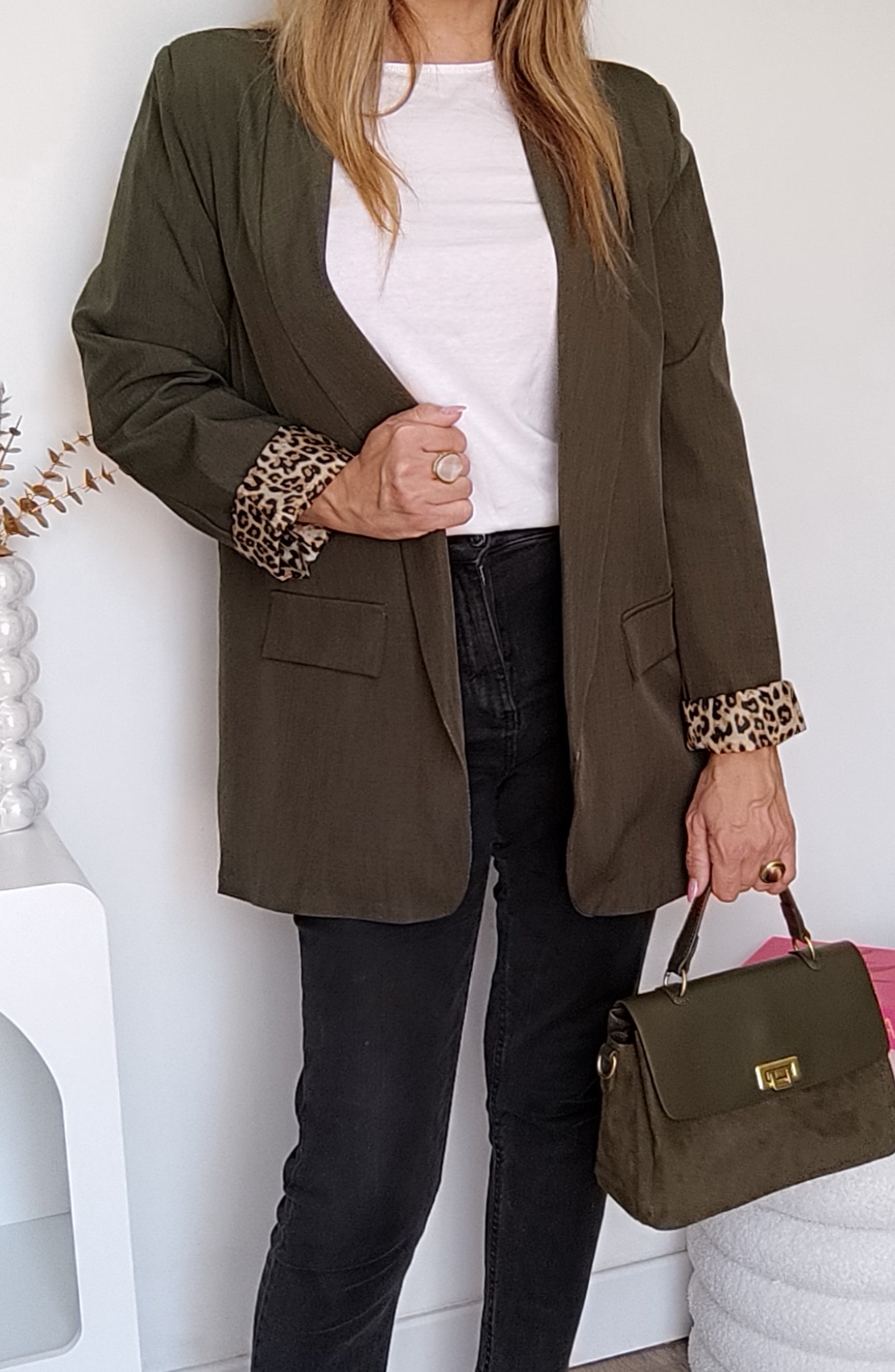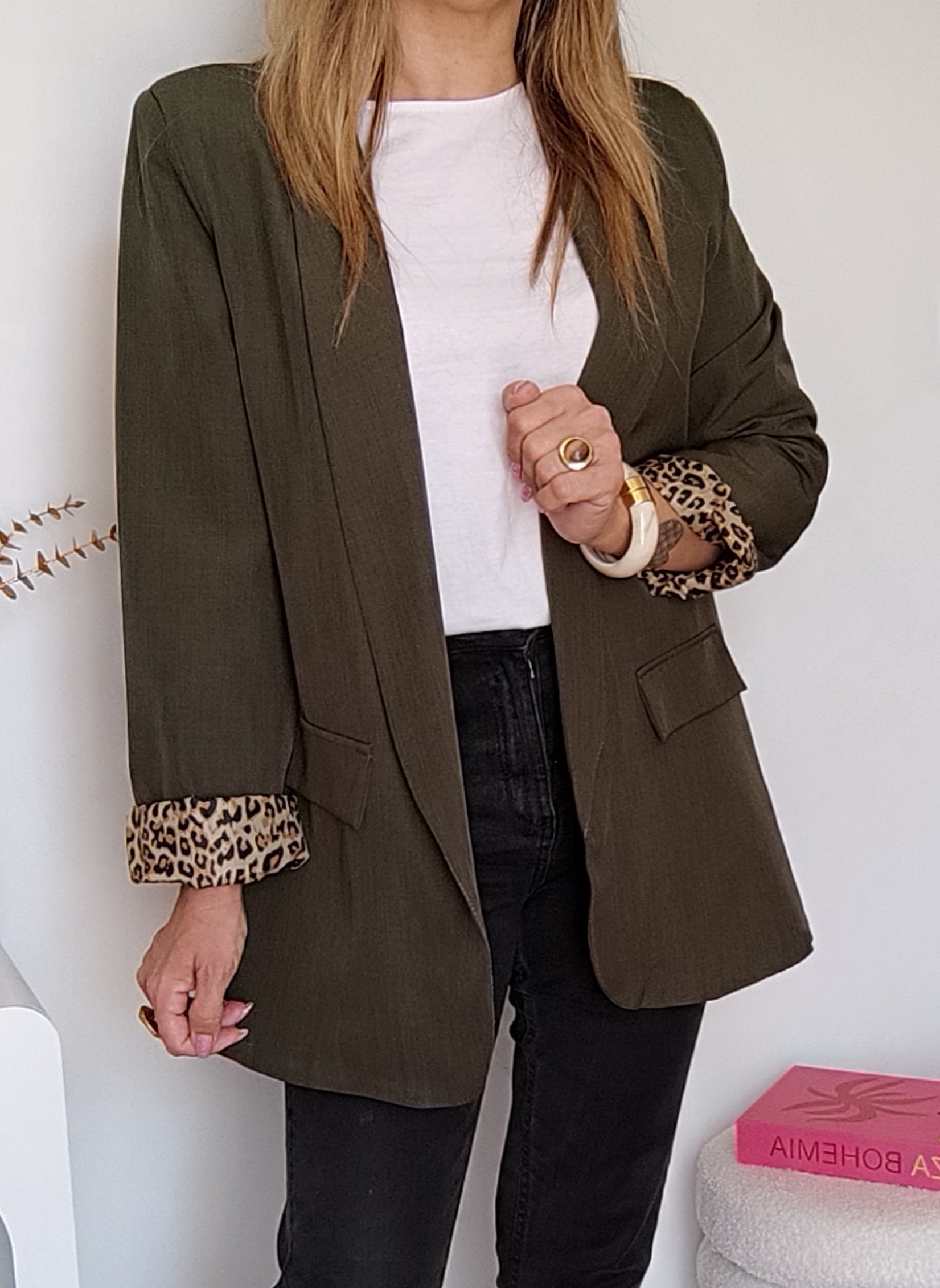 Blazer avec doublure léopard pour un look tendance.