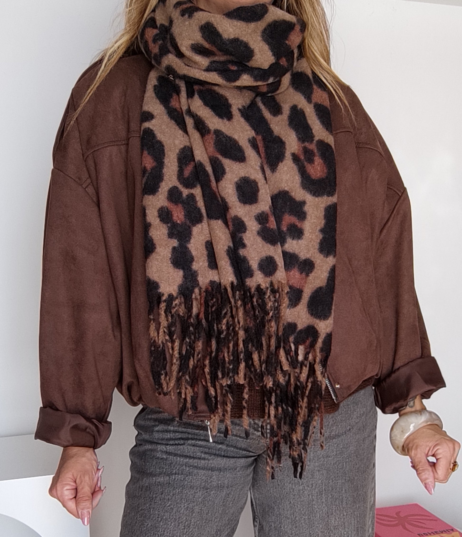 GRANDE ÉCHARPE LÉOPARD MARRON