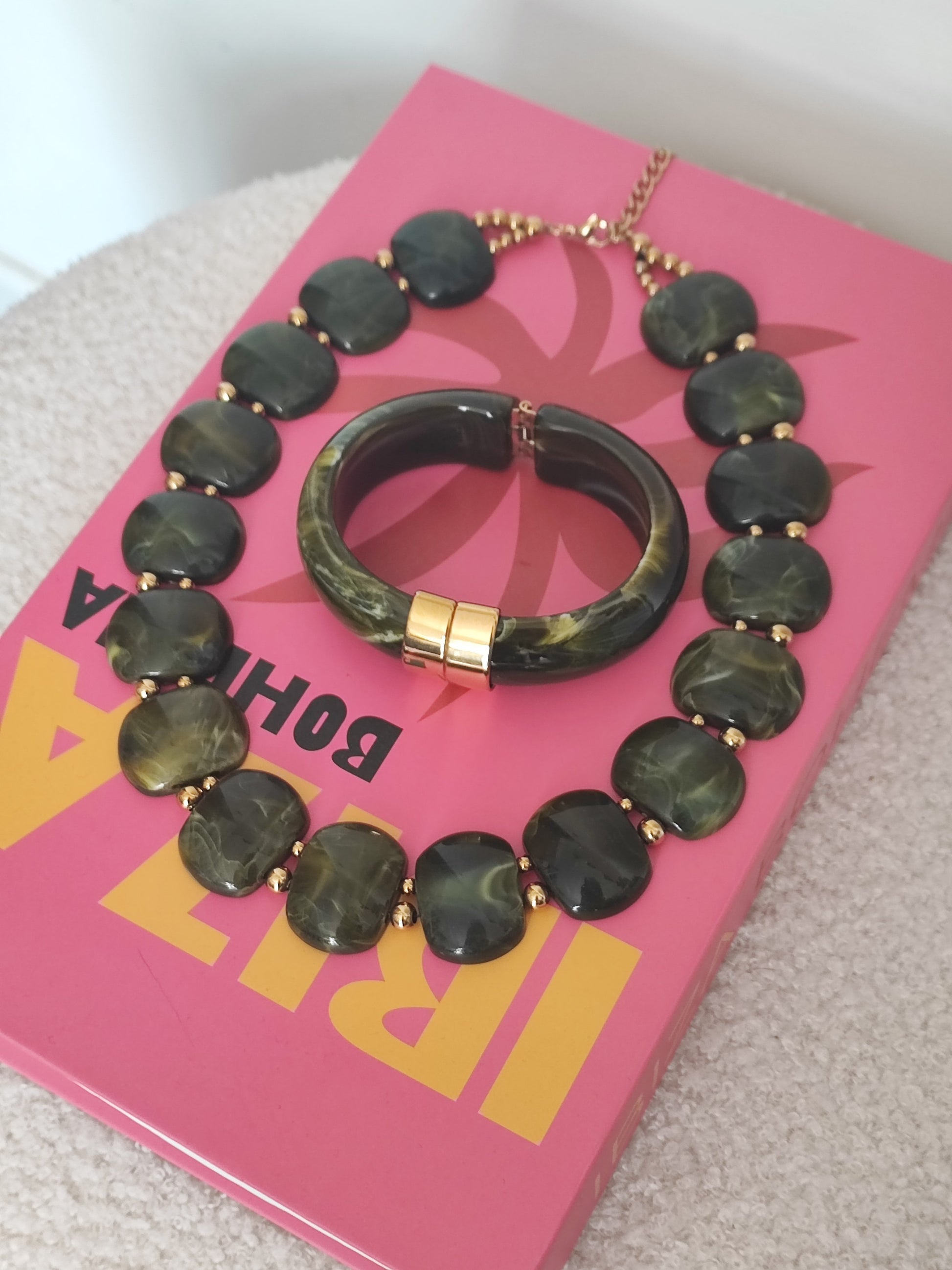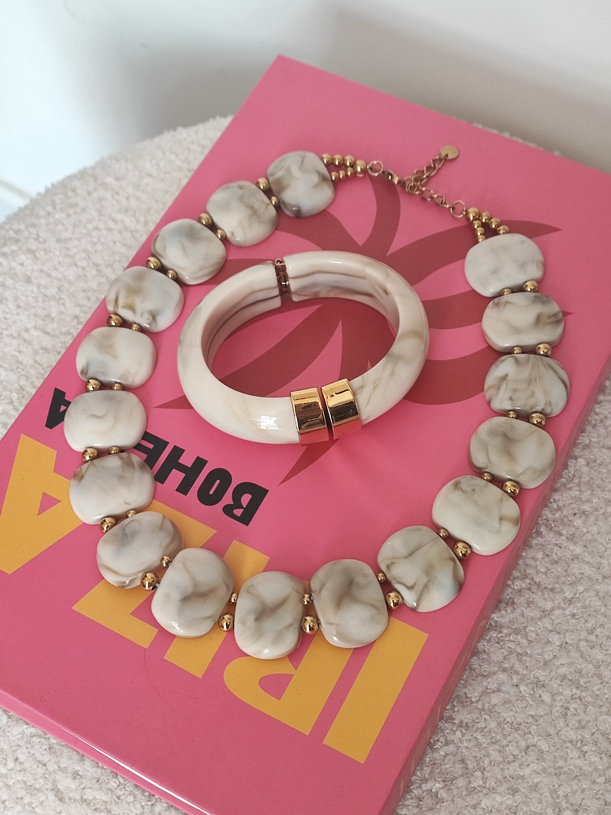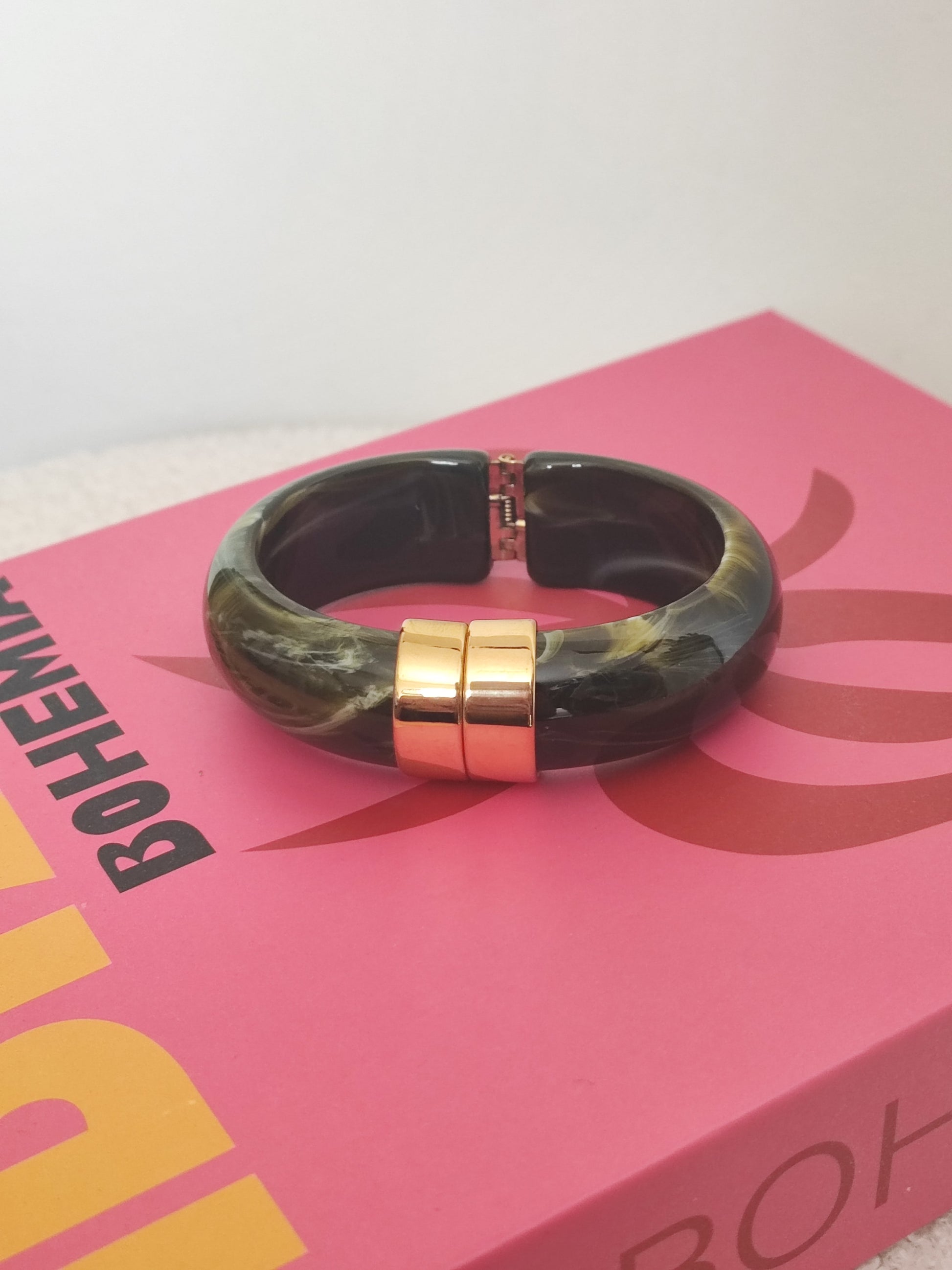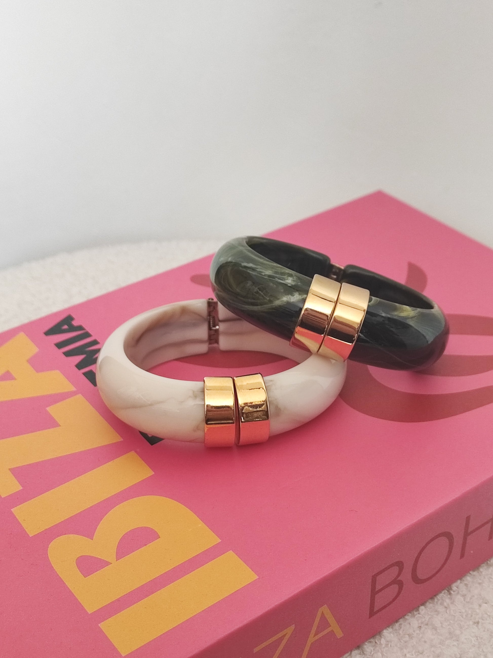 Jonc en résine marbré tendance et acier inoxydable