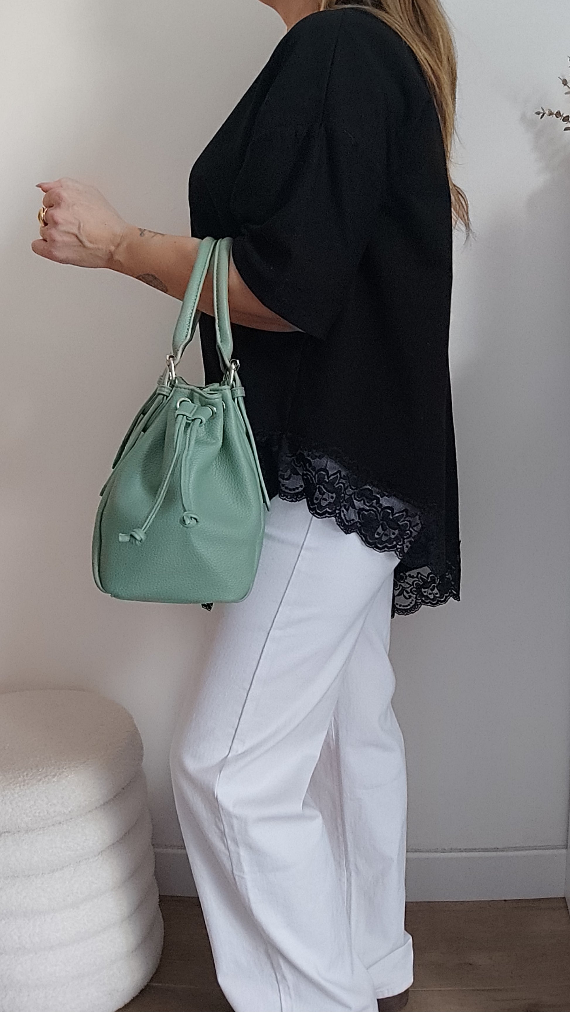 Tee-shirt asymétrique noir avec bas dentelle